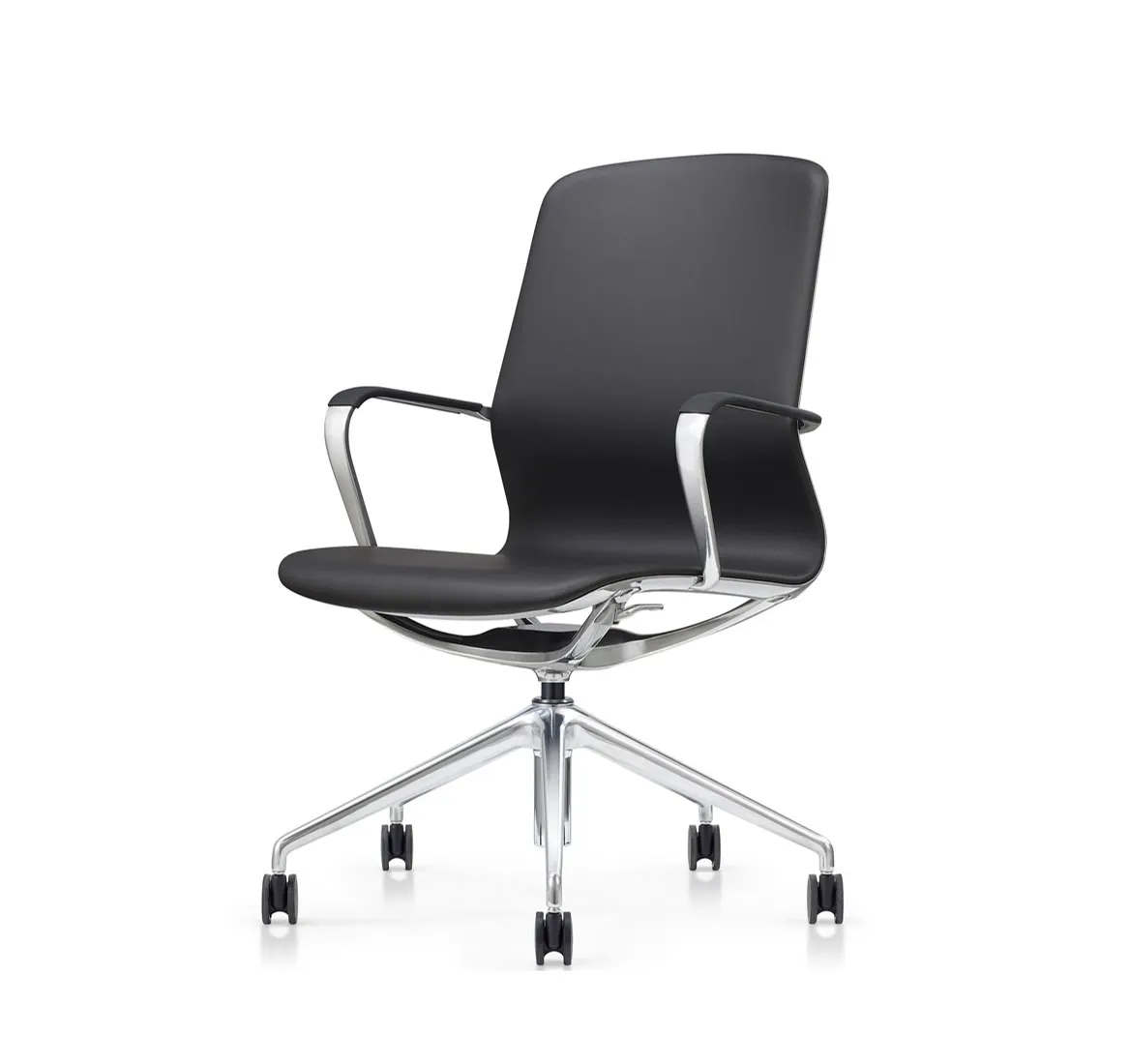 Коллекция Karl представлена двумя креслами: с высокой спинкой для руководителя и с низкой спинкой для брифинг-зоны или зоны переговоров. В складской программе кресла доступны в черной коже, на полированной металлической крестовине с колесами для твердых напольных покрытий. Кресло снабжено механизмом качания с функцией «анти-шок», регулировкой по высоте и регулировкой жесткости качания по весу сидящего.